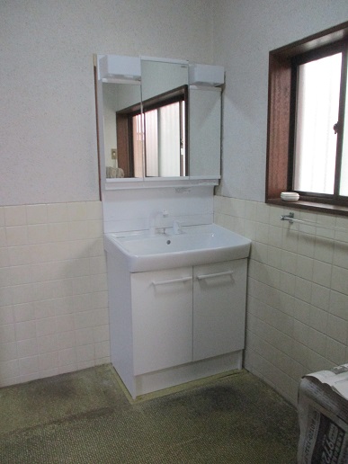 既設の洗面化粧台が老朽化していたので、LIXIL洗面化粧台オフトFTV1N-755SY-Wni取替させていただきました。